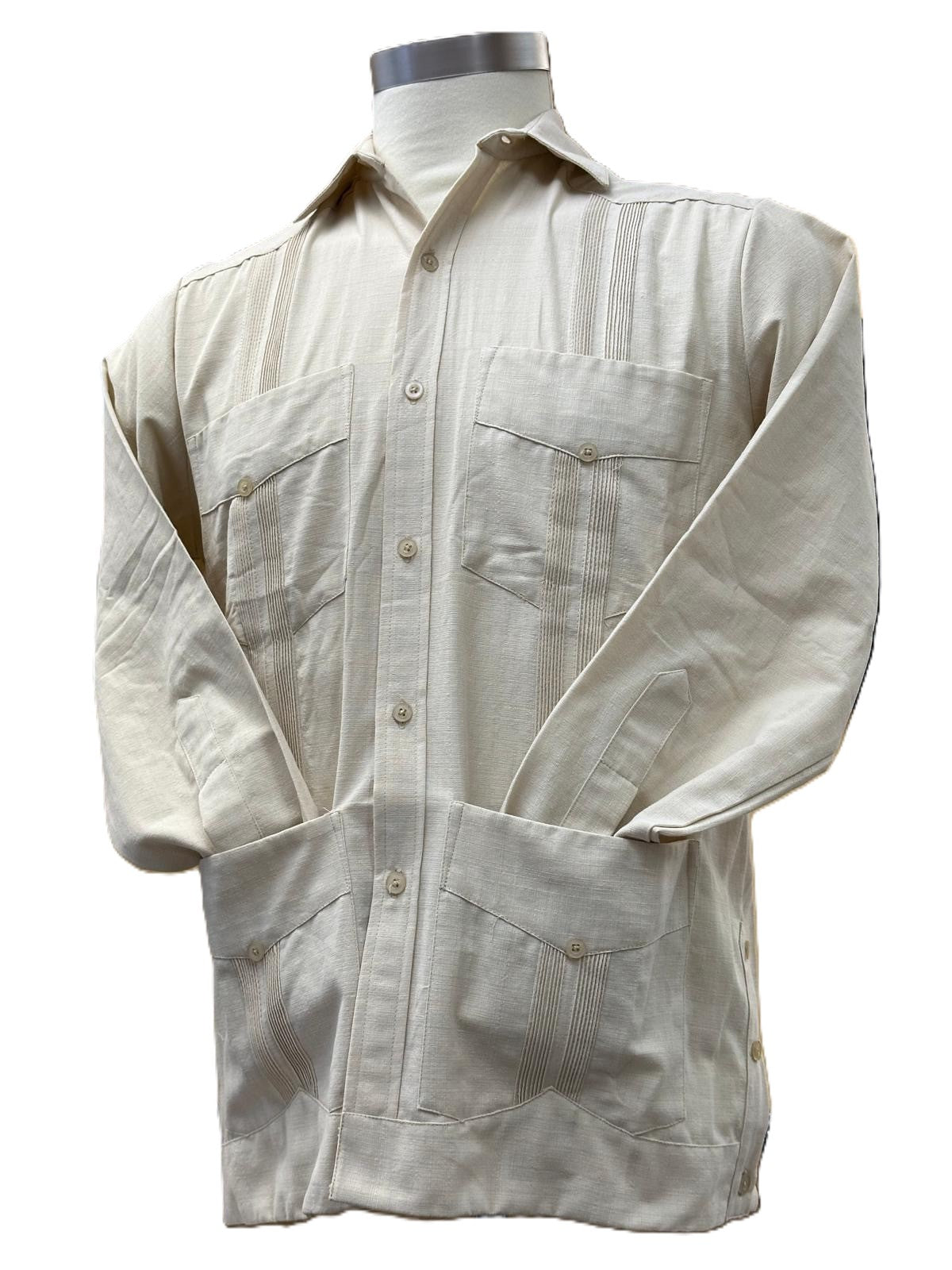 This Classic Ramon Puig Guayabera is made of 100% Ramie. This shirt features signature four-pocket styling, button details, and front embroidered panels.