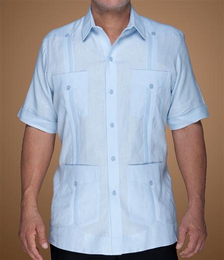 This Classic Ramon Puig Guayabera is made of 100% Japanese linen. This shirt features signature four-pocket styling, button details, and front embroidered panels.